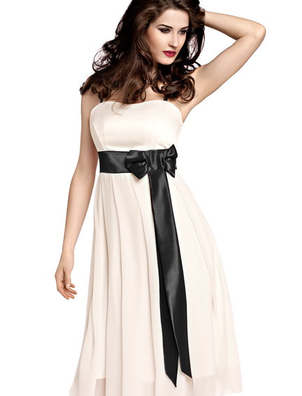 Необыкновенно женственное платье из атласа и шифона длины миди