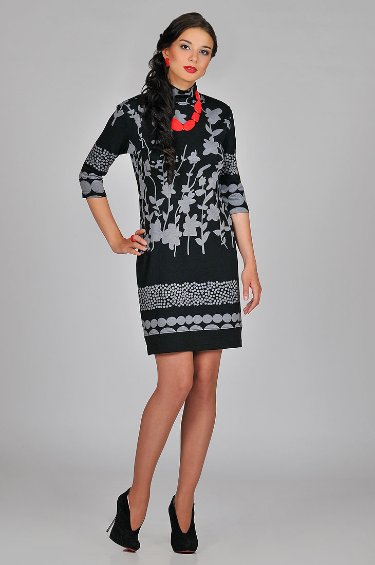 Платье из джерси. Элегантная классика с акварельным принтом, контрастное сочетание оттенков создают не только удобство , но и подчекнут все ваши достоинства.