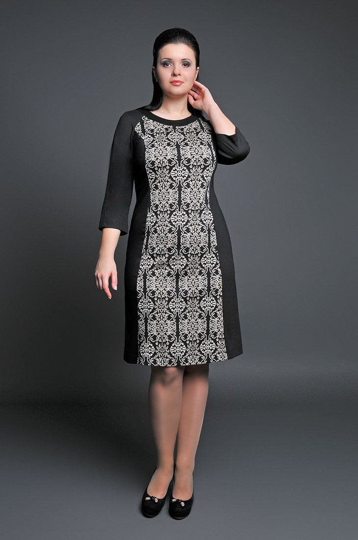 Платье из джерси . Элегатная классика с принтом fler-de-lis , создает образ изящной и утонченной ценительницы модных тенденций.