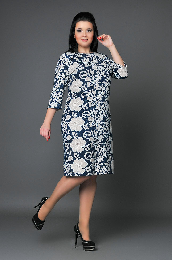 Платье из трикотажа с цветочным принтом в сочетании с кружевным мотивом вносит ноту романтизма в образ. Отлично подойдет дамам, ценящим комфорт и удобство.