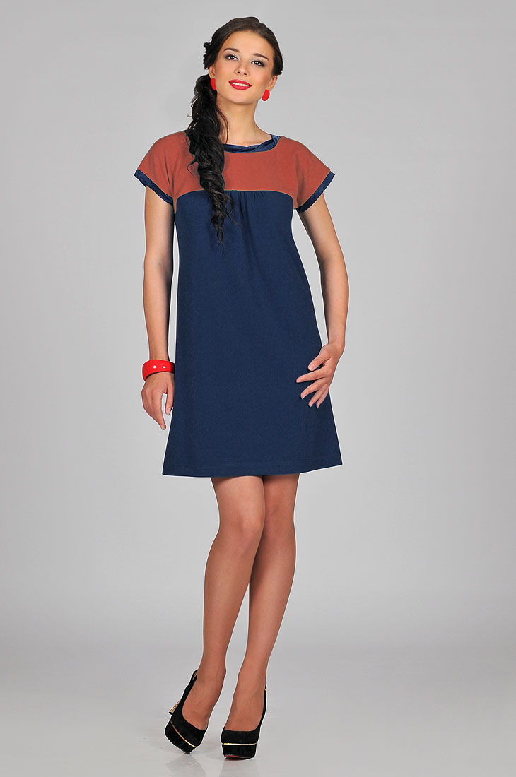 Платье из трикотажного крепа,в стиле Беби Дол. Свободный крой, декорировано атласом.