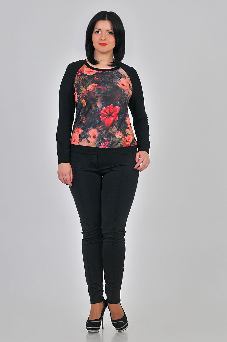 Блуза из трикотажа , комбинированная крепом с акварельным принтом . Безупречный вариант для модных женщин, желающих подчеркнуть свою индивидуальность и хороший вкус.