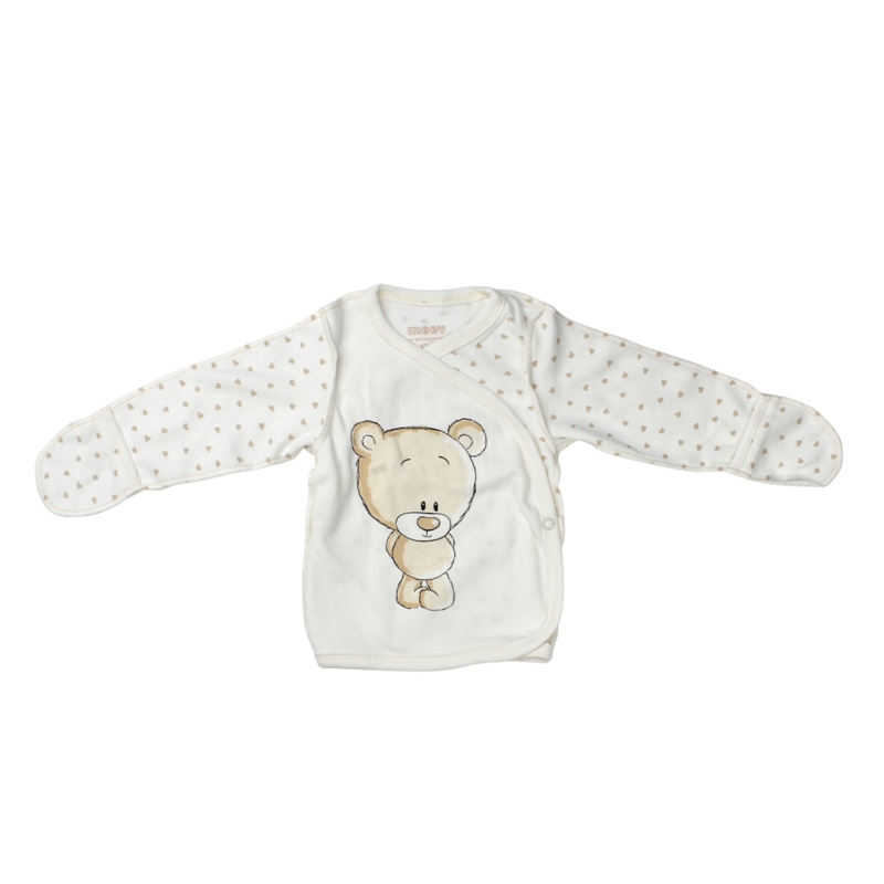 Эту замечательную кофточку-кимоно для новорожденных отличает удобный способ застежки, что облегчит задачу с переодеванием малыша.