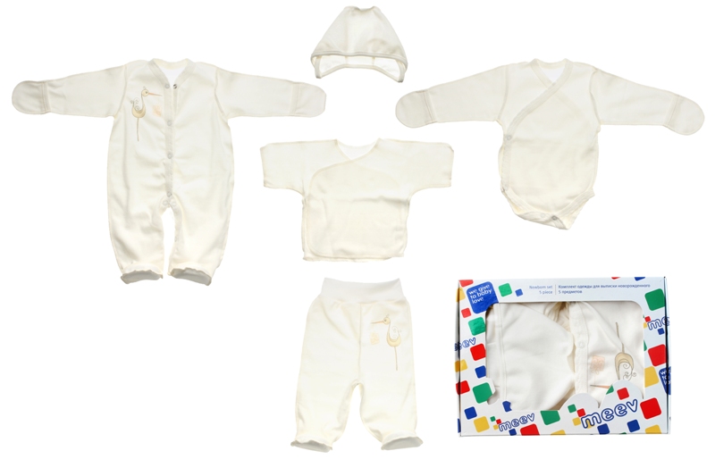 В комплекте найдется все необходимое для первых дней жизни малыша: распашонка с короткими рукавами, удобные ползунки, боди-кимоно с длинными рукавами, уютный комбинезон и, конечно, чепчик.