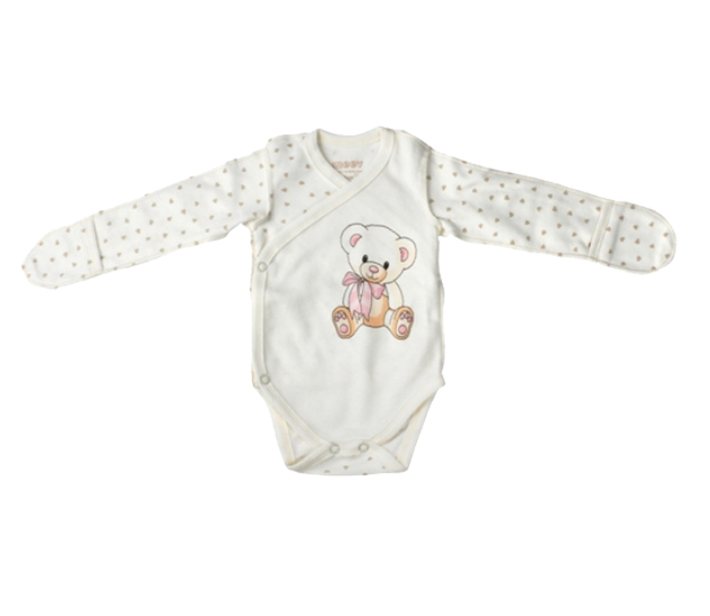 Боди-кимоно с длинным рукавом для новорожденных не только практично, но и очаровательно: с изображением застенчивого мишки.