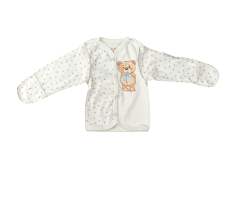 Кофточка для новорожденных на кнопках из 100% хлопка с принтом в виде милого мишки отлично сочетается с любыми штанишками нашей коллекции, что делает ее универсальным предметом одежды.
