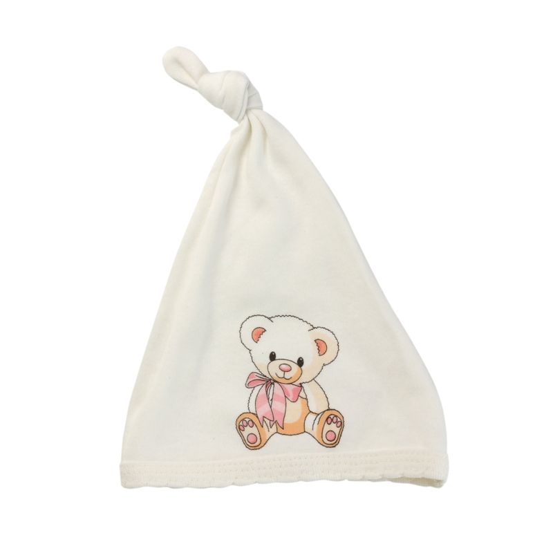 Шов по ободку отделан трикотажной ажурной лентой, которая, в свою очередь, обеспечит хорошую фиксацию шапочки на голове ребенка. Завершает композицию неизменный мишка - символ нашей коллекции.