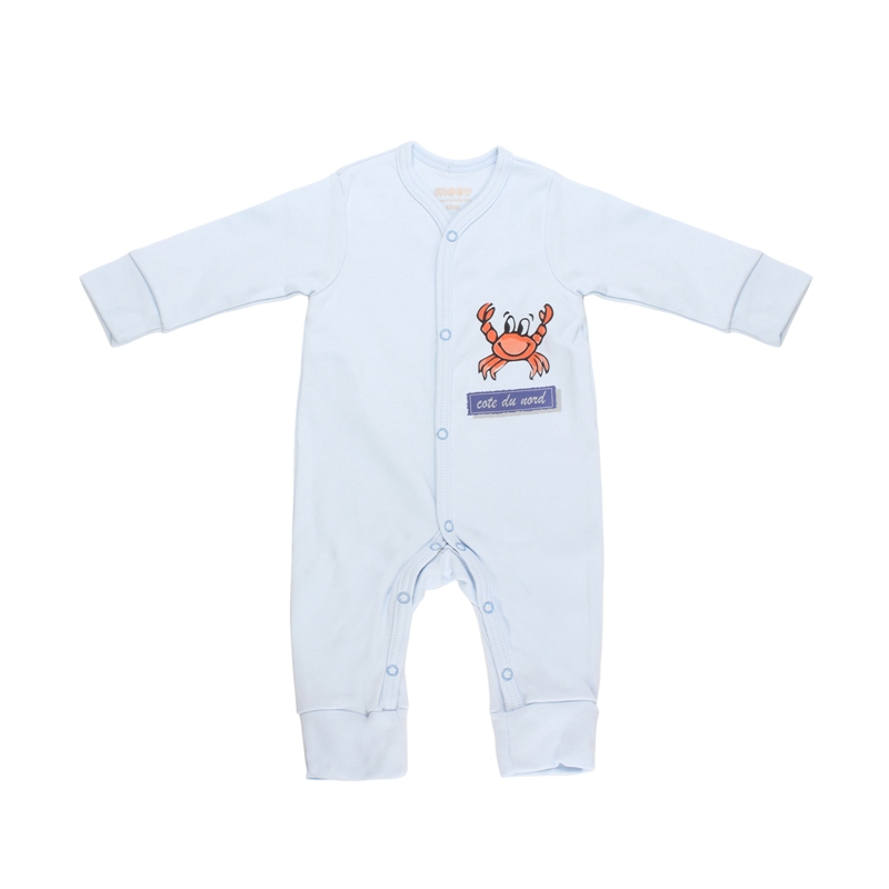 Описание:Комбинезон интерлок с кнопками на груди голубой с принтом