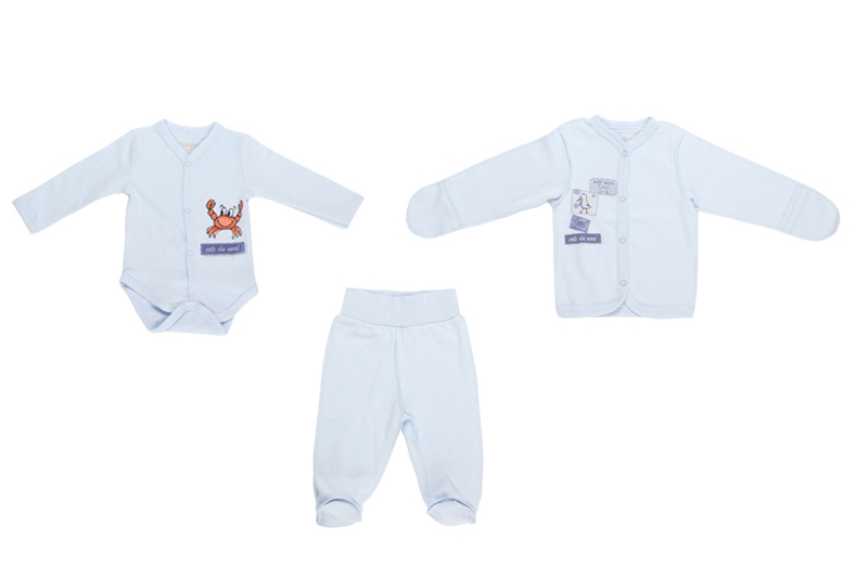 Описание:Комплект: ползунки,кофточка,боди длинный рукав с кнопками на груди интерлок голубой