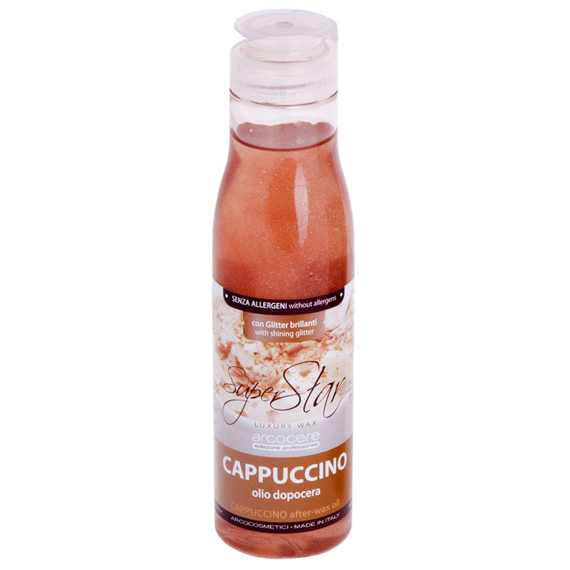 Гипоаллергенное масло после депиляции с жемчужной пыльцой и запахом капучино. Прекрасно удаляет остатки воска и липкость с кожи после процедуры депиляции. Придает коже бронзовый оттенок.