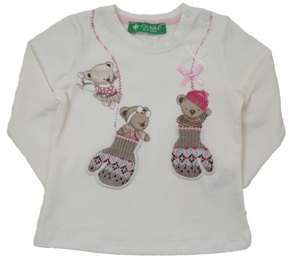 Мягкий трикотаж, красивый, смешной рисунок, украшенный стразами и вязанными варежками понравятся Вам и Вашим малышкам.