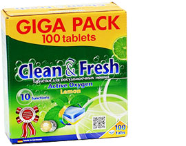 Таблетки для посудомоечной машины , идеально подойдут тем, кто заботится об удобстве своего быта. Высокое качество и низкая цена продуктов не оставит никаких сомнений о покупке именно этих товаров. Таблетки Clean&Fresh великолепно очищают посуду и содержат ополаскиватель для наилучшего результата, в его состав входят специальные добавки, которые смягчают воду и оберегают машину от образования накипи. Таблетки растворяют даже засохшие остатки пищи на посуде и нейтрализуют любые неприятные запахи. Защищают хрусталь и стекло от потемнения и усиливают блеск посуды из нержавеющей стали. Отсутствие при использовании наших средств в таблетках не вызывает раздражения слизистой оболочки верхних дыхательных путей (не вызывает аллергических реакций). Таблетки действуют даже при температуре около 50 градусов, что позволяет снизить энергоемкость мойки посуды