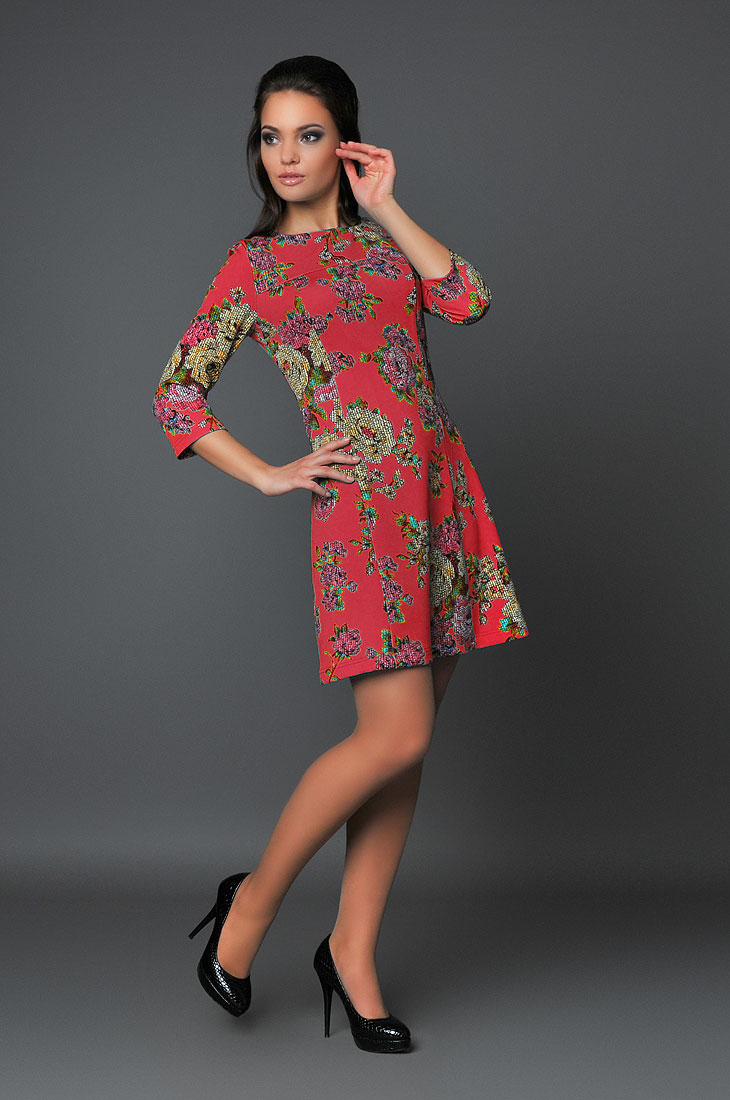 Платьте из трикотажа,утонченный сдержанный крой.Цветочный принт и красный цвет не оставит Вас без внимания,поможет создать яркий образ.