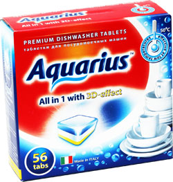 Таблетки для посудомоечной машины "Aquarius" - чистота и свежесть Вашей посуды в каждой таблетке! "Aquarius" не только великолепно очищает посуду и содержит ополаскиватель для наилучшего результата, в его состав входят специальные добавки, которые смягчают воду и оберегают машину от образования в ней накипи. Таблетки растворяют засохшие остатки пищи на посуде и образуют активную пену с 3D - эффектом для идеального блеска посуды. Отсутствие "пыли" при использовании средства в таблетках не вызывает раздражения слизистой оболочки верхних дыхательных путей. Таблетки "Aquarius" эффективны даже при низких температурах мойки-около 30*C , что позволяет снизить энергоемкость мойки посуды. Идеальное сочетание цена-качество.