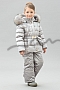Куртка с двойным пуховым пакетом, прилегающего силуэта. Центральная застежка на открытую тесьму-молнию, с нижней ветрозащитной планкой. Воротник стойка. Рукав втачной, регулируемый по длине отворотными манжетами с внутренними ветрозащитными трикотажными напульсниками. Перед, спинка и рукава стеганные горизонтальными переборками на резинках. На нижней части переда боковые прорезные карманы. Капюшон съемный на молнии, с регулируемой кулисой.