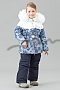 Куртка с двойным пуховым пакетом, прилегающего силуэта. Центральная застежка на открытую тесьму-молнию, с нижней ветрозащитной планкой. Воротник стойка. Рукав втачной, регулируемый по длине отворотными манжетами с внутренними ветрозащитными трикотажными напульсниками. Перед, спинка и рукава стеганные горизонтальными переборками на резинках. На нижней части переда горизонтальные прорезные карманы. Капюшон съемный на молнии, с регулируемой кулисой.