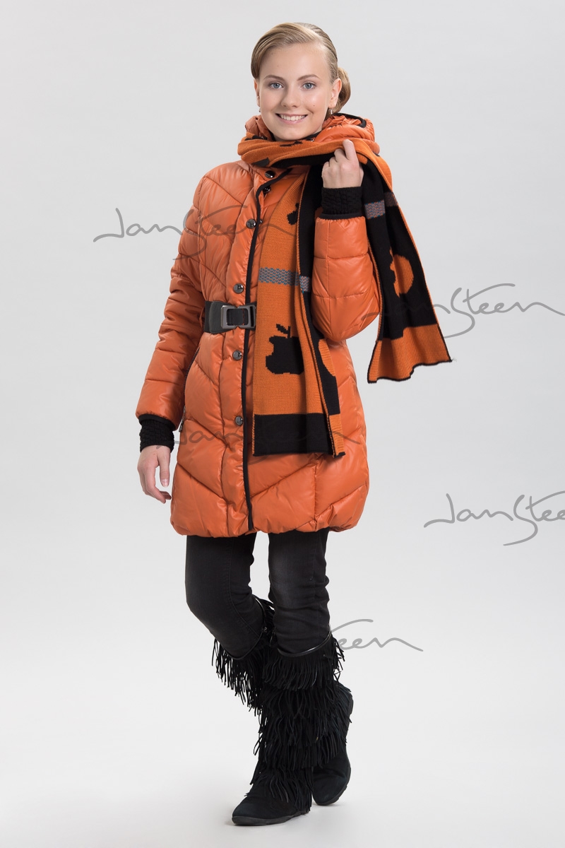 Модель полуприлегающего силуэта Центральная застежка -молния утеплена ветрозащитной планкой на кнопках. Рукав втачной, с удлиненными вязаными манжетами. На нижней части переда боковые прорезные карманы на молнии.