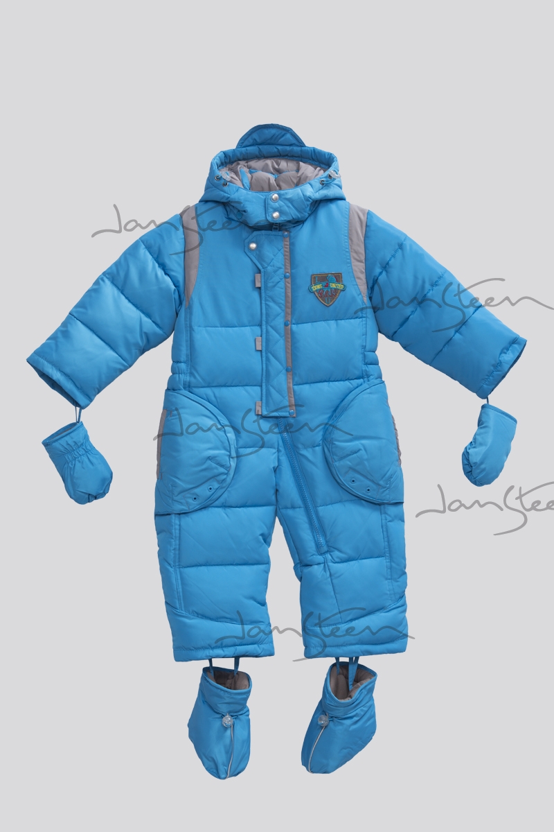Комбинезон-трансформер с открытой застежкой молнией с внутренней веторозащитной планкой.Рукав втачной с внутренними ветрозащитными манжетами.Капюшон отстегивается на кнопках.По краю капюшона расположена регулируемая кулиса со шнурком-резинкой и стопорами. Длина рукава и брюк регулируются отворотными манжетами.Засчет молний по шаговому шву комбинезон трансформируется в конверт.