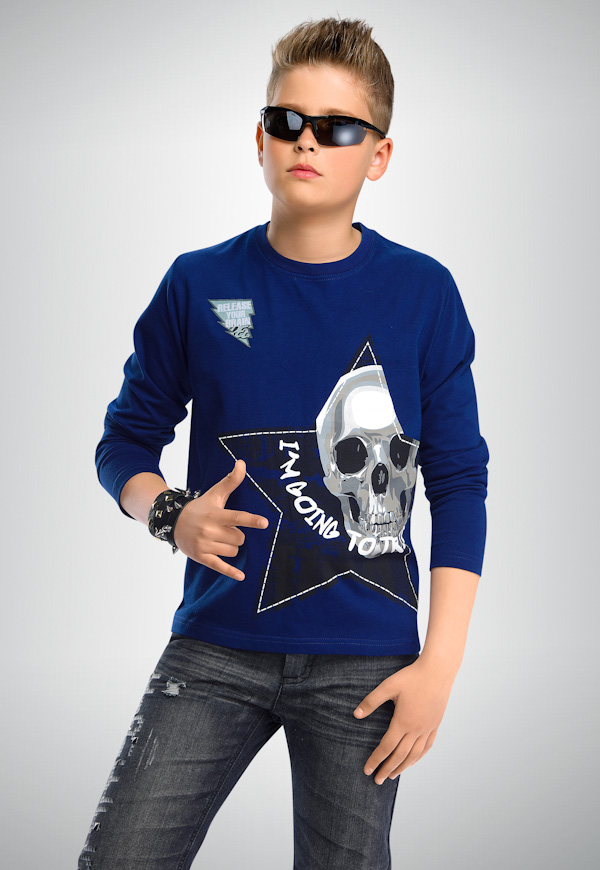 Черепа в этом сезоне актуальны как никогда. Стильный джемпер для мальчиков с актуальным принтом с металлическим блеском смотрится очень круто.