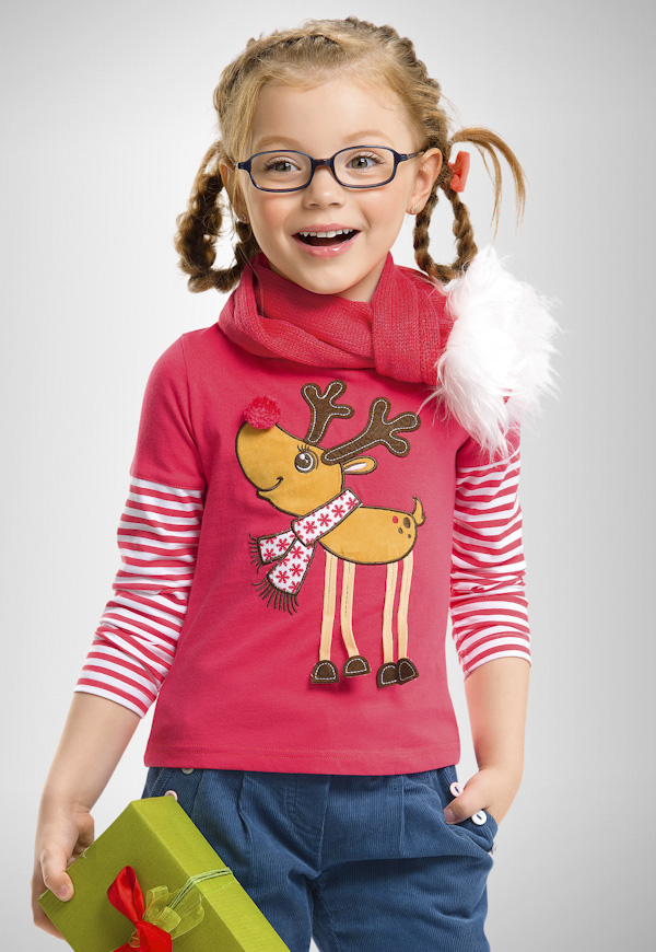 Яркий джемпер для девочек с объемной аппликацией - олень с отлетными копытцами.