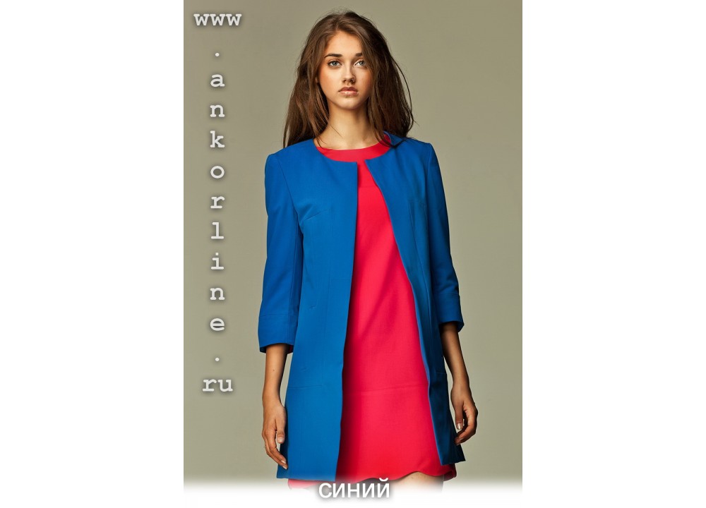 Длинный жакет с рукавами три четверти и округлым вырезом горловины. Смелость и изысканность модели помогут Вам выделяться в любом месте. Если Вы любите яркие и нестандартные образы, этот жакет как раз для Вас.