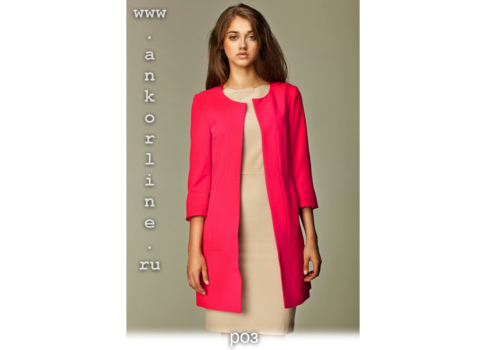 Длинный жакет с рукавами три четверти и округлым вырезом горловины. Смелость и изысканность модели помогут Вам выделяться в любом месте. Если Вы любите яркие и нестандартные образы, этот жакет как раз для Вас.
