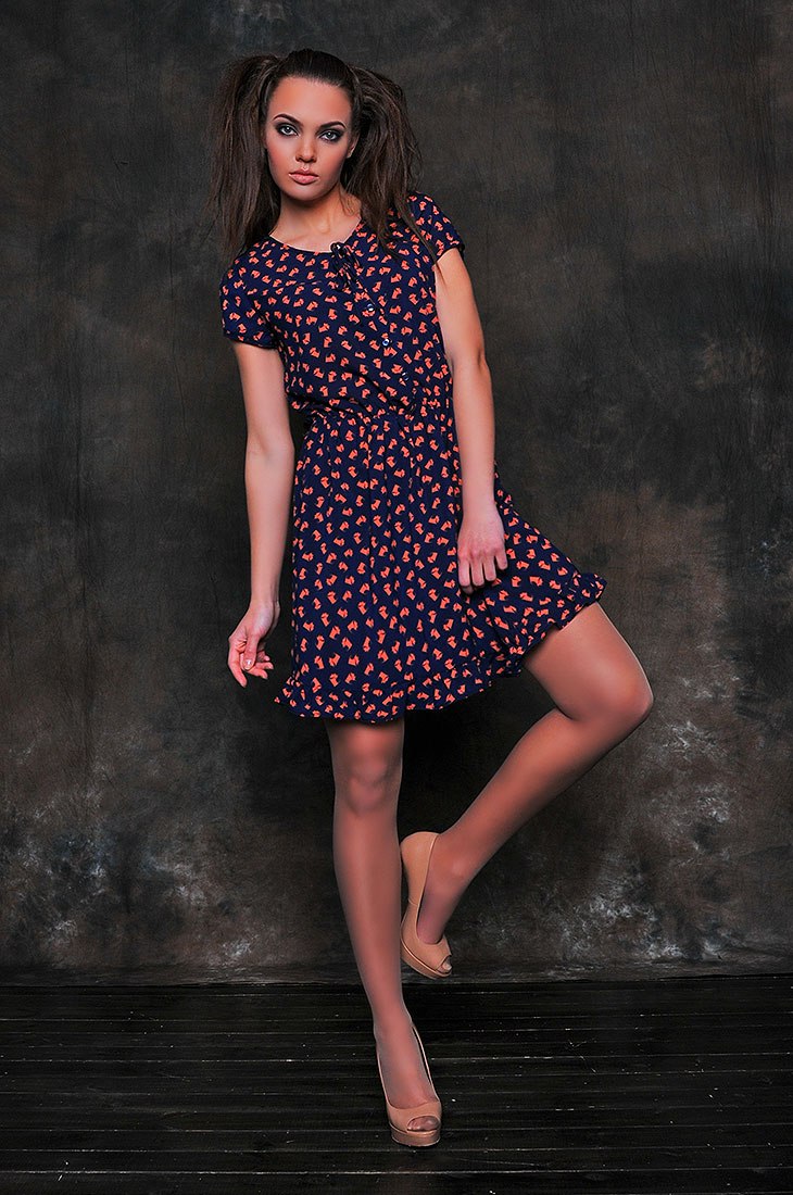 Легкое и соблазнительное...платье из полупрозрачного креп-шифона по-прежнему на пике популярности. Не удивительно, ведь оно выглядят очень чувственно и фантастически красиво. Полуприталенное расширенной к низу платье длиной выше колена, декорировано воланом, юбка на подкладке Полуприлегающий лиф на пуговицах, округлый вырез горловины и укороченный рукав, обратят внимание на женственные линии. Животный принт добавит в образ загадочности и шарма.