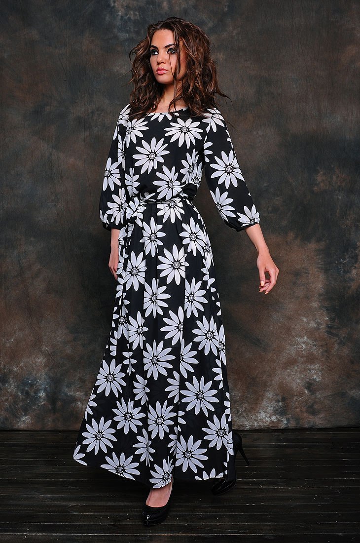 Мягкость и цветочный принт платья макси манит в сказку. Этот стиль похож на эльфийский. Эльфийский мистицизм, это что-то воздушное и необыкновенное. Шифоновое длинное платье с округлым вырезом горловины, юбка на подкладке ,полуприлегающего силуэта и рукавами 3/4 подчеркнет изящные линии Вашего образа и романтичность натуры.