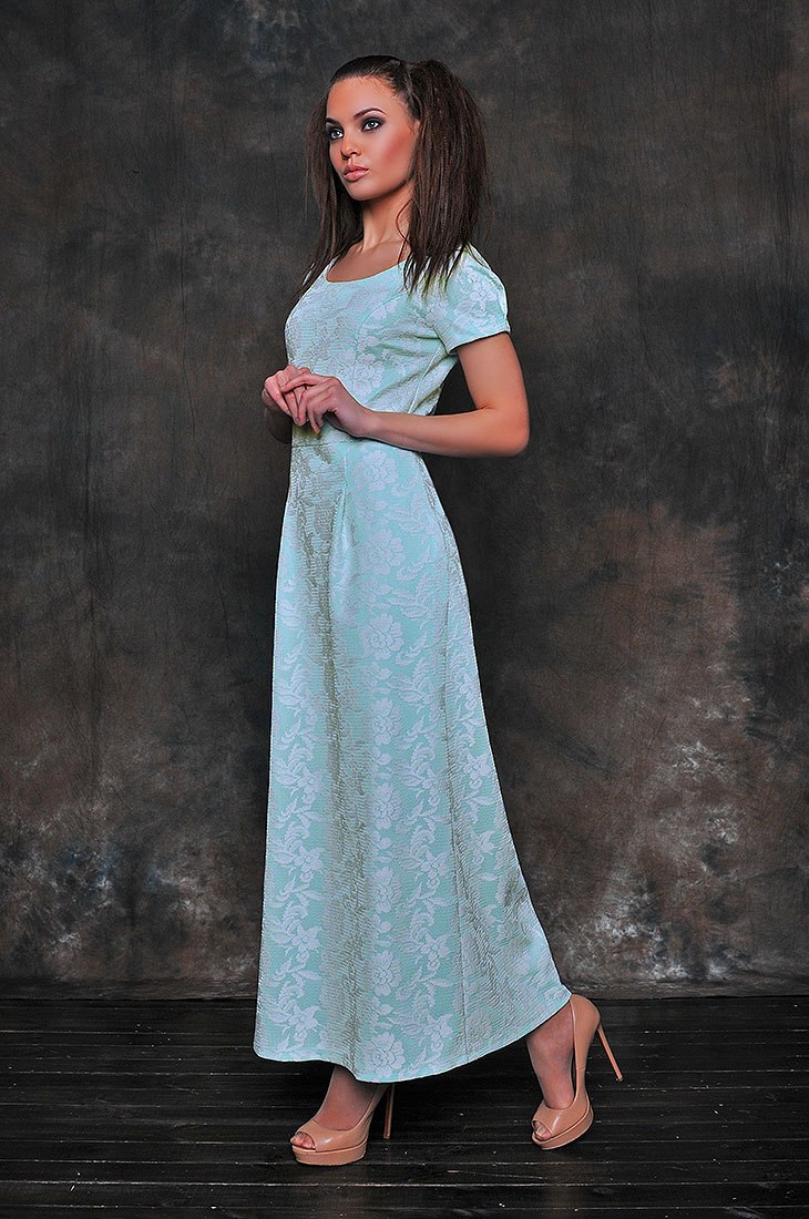 Длинное платье из кружевного трикотажа очаровывает своей простой .Приталенный силуэт с округлым вырезом горловины подчеркивает зону декольте. Укороченный втачной рукав демонстрирует плавные линии рук. Длинное платье невероятно соблазнительно и божественно красиво.