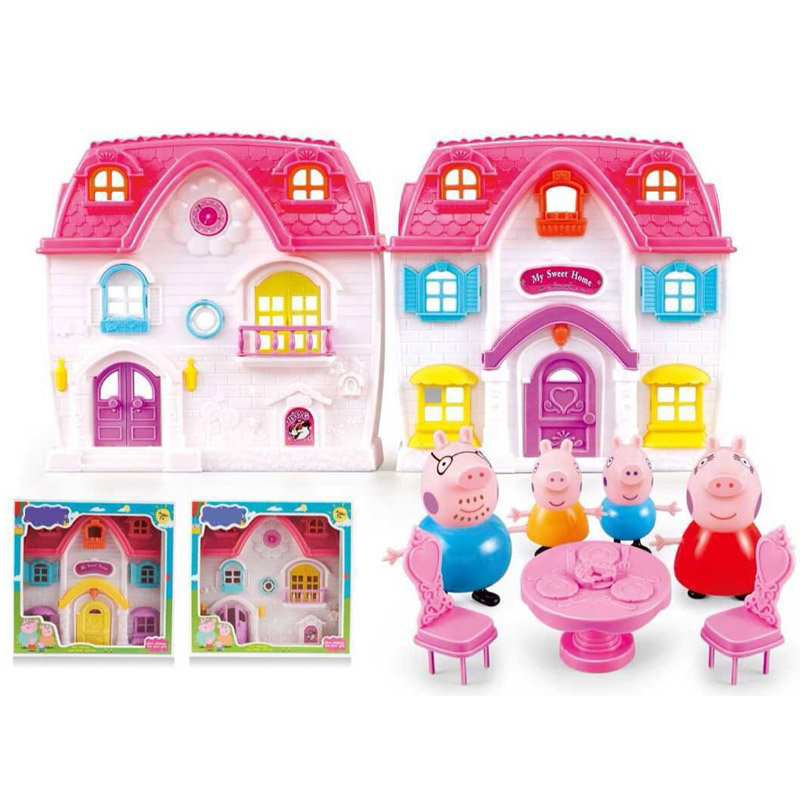 В игровой набор входит: домик,мебель и четыре фигурки семьи свинки Пеппы.