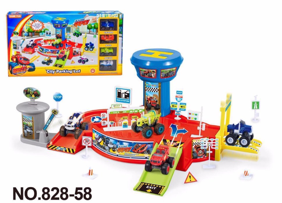 Нижний ярус представляет собой заправку, заехать на нее можно двумя путями, есть также удобная зона выезда. На заправке есть башня с удобной площадкой для приземления вертолетов. В комплект также входят наклейки и дорожные указатели, которые помогут ребенку лучше запомнить правила дорожного движения.