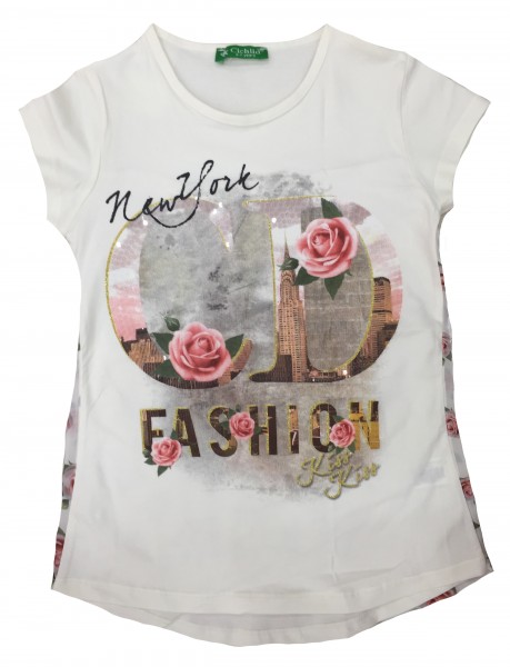 Мягкий трикотаж, нарядная модель, красивый рисунок, на спине шифоновые вставки понравятся девочкам.