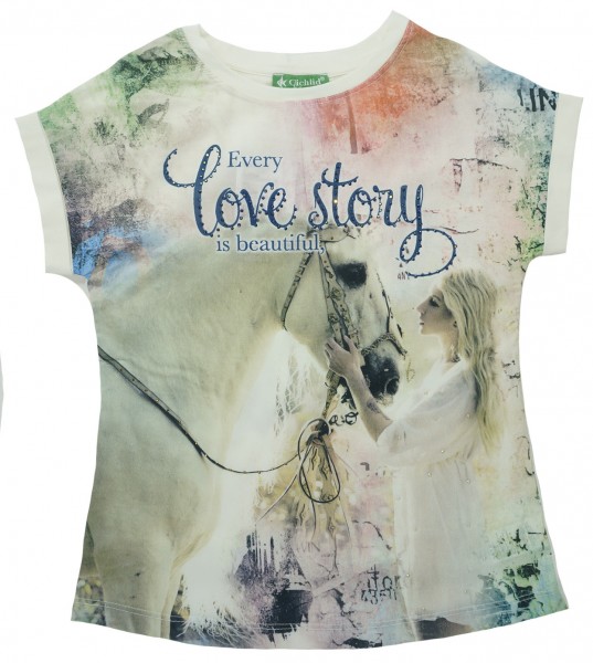 Красивая модель из мягкого трикотажа, яркий шифоновый рисунок украшен стразами, понравится девочкам.