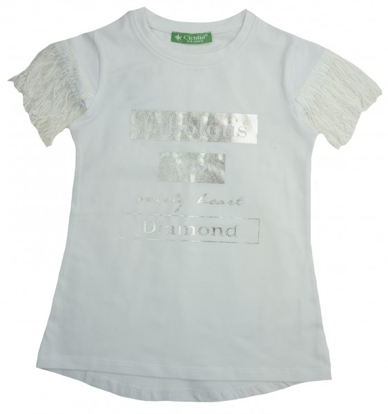 Красивая модель из мягкого трикотажа, стильный рисунок, рукава с бахромой, понравится девочкам.