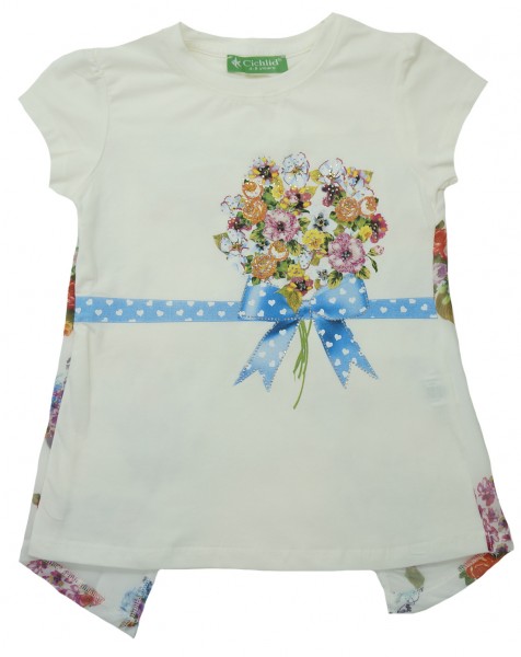 Удобная модель из мягкого трикотажа, красивый рисунок украшен стразами, на спине шифоновые вставки, понравятся девочкам.