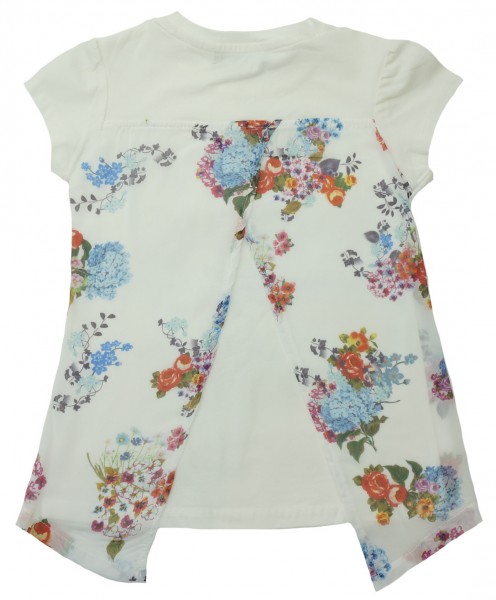 Удобная модель из мягкого трикотажа, красивый рисунок украшен стразами, на спине шифоновые вставки, понравятся девочкам.