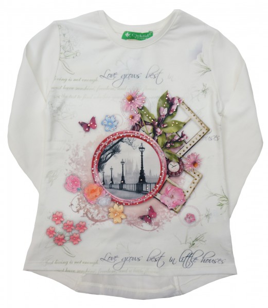 Удобная модель из мягкого трикотажа, красивый и нежный рисунок украшен небольшим количеством страз и шифоновыми цветами, для комфорта ребенка внутренняя часть рисунка отделана двойной нитью, понравится девочкам.