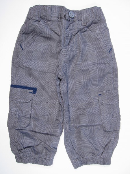 Плотная плащевая ткань в клетку, удобная модель на трикотажной подкладке с резинкой на поясе, карманы, интересная отделка понравятся мальчишкам.