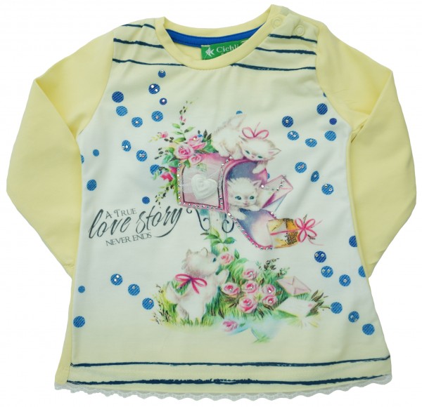 Удобная модель из мягкого трикотажа, красивый и яркий рисунок, украшенный стразами, понравятся Вам и Вашим малышкам.