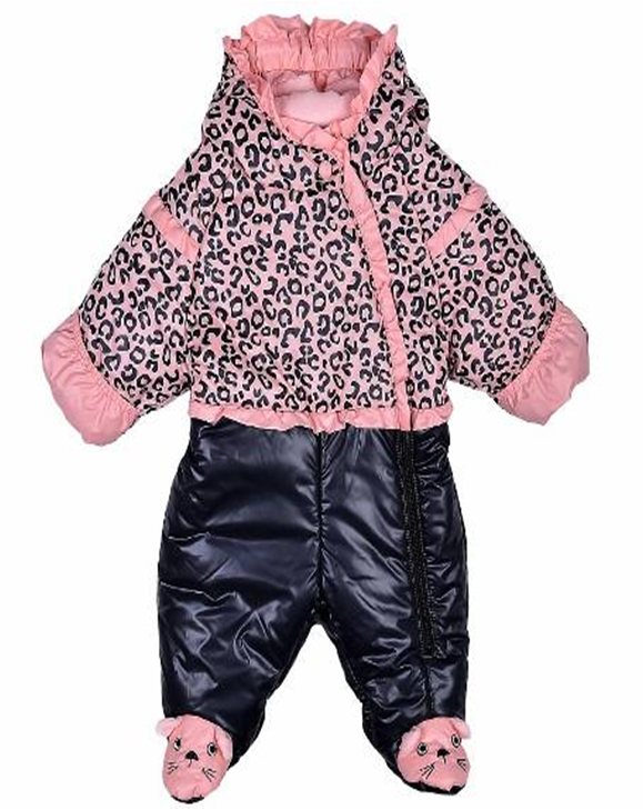 Комбинезон для девочки. Детали комбинезона: резинка по краю капюшона, асимметричная молния по всей длине комбинезона, ветрозащита шеи с застёжкой на кнопку, рукава дополнены закрывающимися отворотами, комбинезон украшен декоративной аппликацией и вышивкой