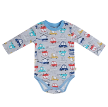 " Боди с длинным рукавом,застегивается на кнопки,спереди аппликация машинки на сером Боди выполнен из интерлока 100% хлопок карс грей (бритишь блу)