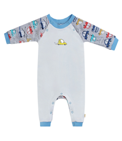 " Комбинезон с рукавом реглан ,спереди аппликация,застежка на кнопкипо горловине и низу,низ рукава и комбинезона на манжете белый,машинки на белом Комбинезон выполнен из интерлока 100% хлопок белый(карс грей, бритишь блу)